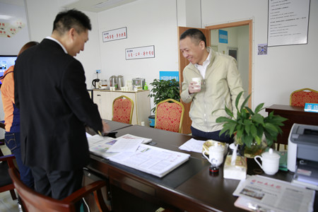 圖為集團副董事長、總經理張建平在股權黃巖收購點檢查 張建平還到股權黃巖收購點,慰問一線工作人員,了解近期的股權收購進度,存在的困難和問題,肯定股權收購成績。當了解到黃巖區委常委、常務事區長蔡理明已到收購點調研,并將就股權收購工作進行再動員、再督促,進一步推進高速股權收購工作。張建平對黃巖區政府表示感謝的同時,鼓勵工作人員在各級政府部門和社會各界 的大力支持下,樹立信心,再接再厲,共同努力,早日實現股權收購目標。 李佩紅