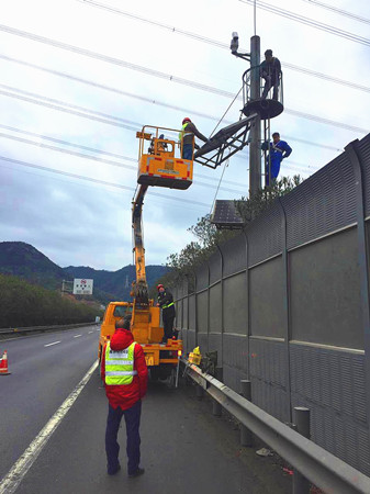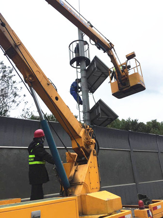 近日,集團(tuán)工程養(yǎng)護(hù)部機(jī)電設(shè)備維養(yǎng)中心組織施工單位,頂著寒風(fēng)冷雨對沿線有裂痕破損的云臺太陽能板進(jìn)行了拆除更換,為即將到來的春運工作打下堅實的基礎(chǔ)。 集團(tuán)路段共有36個監(jiān)控云臺,它們在提高高速公路管理和服務(wù)水平上起著重要作用,當(dāng)發(fā)生交通異常時,能及時確定事故并實時發(fā)布相應(yīng)的誘導(dǎo)和救援信息,保障道路暢通,減少財產(chǎn)損失。維養(yǎng)中心在之前一次摸底排查中發(fā)現(xiàn)沿線有10處云臺太陽能板由于年久老化,面板晶體出現(xiàn)不同程度開裂破損,嚴(yán)重影響太陽能供電效果,導(dǎo)致監(jiān)控設(shè)備無法有效運轉(zhuǎn)。