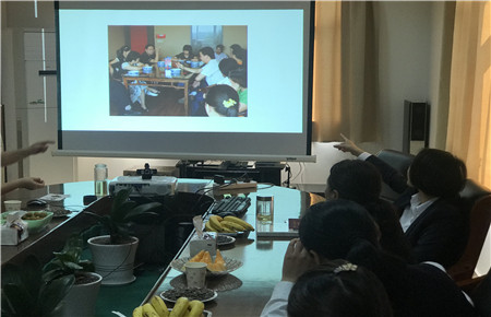 圖為歡送會上觀看視頻