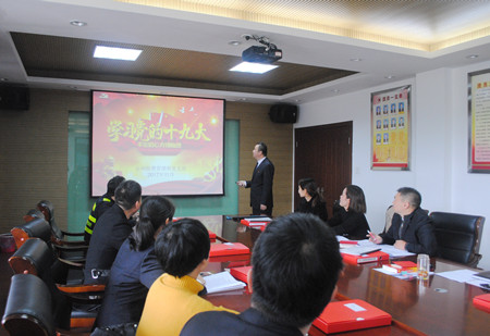 圖為學(xué)習(xí)十九大報告內(nèi)容現(xiàn)場 黨支部書記王小勇制作了學(xué)習(xí)十九大報告內(nèi)容的PPT,設(shè)框架、劃重點,以圖文并茂的形式,將學(xué)習(xí)十九大精神與日常工作緊密聯(lián)系起來,為更好地開展工作打下堅實的思想基礎(chǔ)。