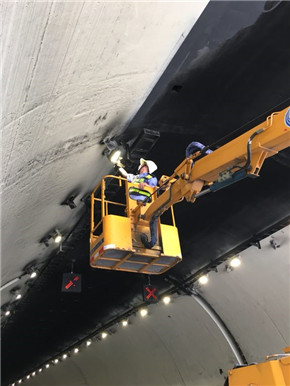 圖為執勤人員配合供電部門安裝高壓線路 清洗期間,該所全體員工輪流加班,突擊應戰,重點配合供電部門完善南配雙回路供電系統,以及隧道監控攝像機和照明燈具清洗維護、機電設備除塵、消防設施安全檢查保養等工作。“11號攝像頭還不清晰,屏幕上還有污點。”“收到,馬上倒車回去清理。”中控室的工作人員和隧道內的清洗人員遙相呼應,里外配合,發現問題當場立即整改。 嚴要求,高效率。在大流量交通下,大家分工明確,各司其職,嚴防發生長時間、長距離的交通擁堵,確保了隧道清洗工作的順利實施。 5月21日13時左右,歷時三天的黃土嶺隧道清洗工作比預定計劃提前3個多小時結束。隧道再次舊貌換新顏,通行環境也得到了全面改善和提升。 林玲