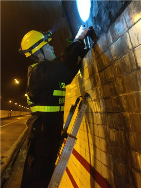 中心工作人員在管理現(xiàn)場(chǎng)安全的同時(shí),主要負(fù)責(zé)修復(fù)隧道內(nèi)損壞的逃生標(biāo)志牌、報(bào)警電話指示燈、攝像頭等機(jī)電設(shè)備。