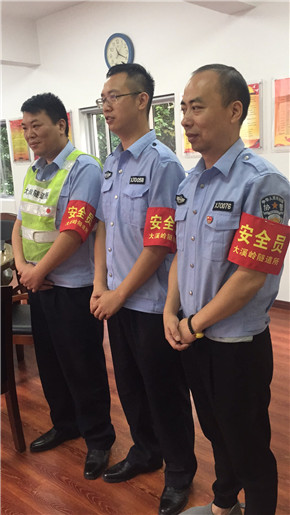 圖為上崗的執(zhí)勤隊(duì)員佩戴紅袖章