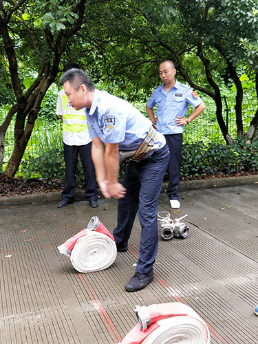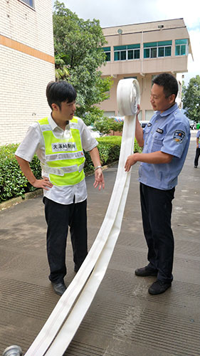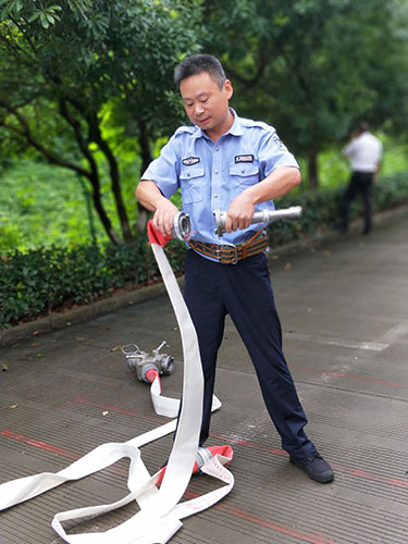 圖為主講人馮常敏操作示范現場 現場,“馮大師”腳下放著兩盤水帶,站姿已成“丁”字步,雙腿微曲,兩拇指與食指握住水帶根部,使虎口以順時針方向對準接口處,做好甩開的準備。“甩第一盤水帶,要運用手腕的力量,要提起水帶并高于地面20到30厘米,再用大臂帶動小臂的力量向前甩出。” “馮大師”耐心地指導。 接下來是兩盤水帶連接的關鍵時候,“馮大師”左右手熟練操作,將如何連接的操作細節(jié)一一展現出來,同時邊操作邊說明注意事項,整套動作連貫又迅速,操作一氣呵成,一旁的新人仔細觀摩學習。