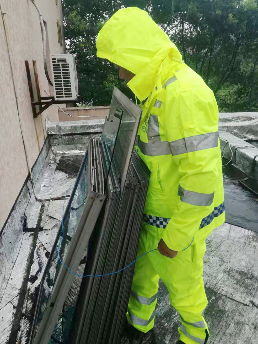 圖為工作人員捆扎散落的物品 8月9日上午,超強(qiáng)臺(tái)風(fēng)帶來(lái)強(qiáng)降雨,大溪嶺隧道所隊(duì)員們做好一切防臺(tái)準(zhǔn)備,備好發(fā)電機(jī)所需燃油,保證所有車(chē)輛車(chē)況良好并加滿(mǎn)油;充分備好繩索、應(yīng)急燈、雨衣雨靴、藥品、食物等防臺(tái)物資;檢查各類(lèi)通訊線(xiàn)路,確保內(nèi)部通訊電話(huà)、報(bào)警電話(huà)等重要線(xiàn)路暢通;放下北廣場(chǎng)的二高桿燈。隊(duì)員們爬到屋頂,對(duì)散落的物品進(jìn)行捆扎,并疏通堵塞的排水管,確保排水設(shè)施良好。所有人員全力做好防臺(tái)部署工作和防御措施,確保大溪嶺隧道一切設(shè)備正常運(yùn)行,隧道平安暢通。 陳智慧