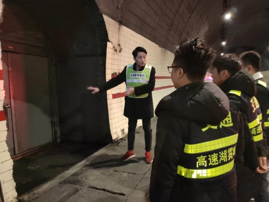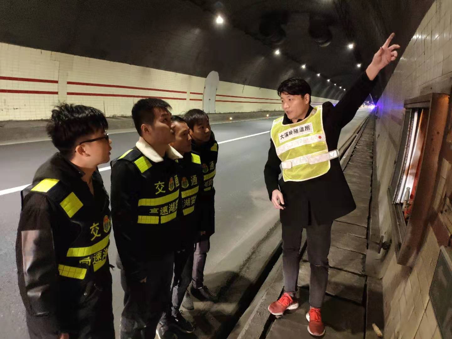 圖為羅鳴春對樂清市高速公路湖霧嶺隧道開發有限公司駐隧道南邊執勤點的幾位新員工進行培訓 借此次隧道清洗良機,所長助理羅鳴春對樂清市高速公路湖霧嶺隧道開發有限公司駐隧道南邊執勤點的幾位新員工進行業務培訓,帶他們進入隧道熟悉隧道內消防箱、人通、汽通的位置,并告知平時執勤時的工作任務,詳細解說了隧道封道、卡口、路面執勤、施救的操作流程,希望他們能盡快融入工作,為大溪嶺-湖霧嶺隧道平安暢通貢獻力量。臺溫雙方將持續合作,共同管理,共同維護好這條隧道。 陳智慧