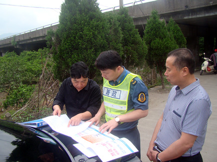 圖為公司安全總監項同富與高速路政人員在現場討論整治方案 之前,高速路政大隊通過巡查,發現公司部分高速橋下存在較多堆放雜物、傾倒垃圾等現象,便提出了在橋下安裝禁令標牌的初步方案,方案包括告示牌設計內容和具體安裝位置。 自接到該大隊的初步整改方案通知后,公司積極配合,迅速召集相關部門開展行動,再次檢查有問題的部位,并根據檢查情況細化整改方案,以及具體落實禁令標牌安裝形式、位置、尺寸等事宜,以更合理、科學地解決問題。 陳科