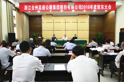公司2016年度股東大會圓滿結束 6月1日下午,公司2016年度股東大會在26樓會議室召開。本次股東大會出席股東共12人, 代表股份92648637股,占公司總股本的比率為42.89% ,占本次股東大會登記股份的比率為100%,符合《公司法》及《公司章程規定》。臺州市基礎設施建設投資集團有限公司總經理王輝,公司全體董事、監事和高管人員出席本次股東大會。會議由公司副董事長、總經理張建平主持。