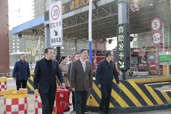 圖為市行政服務(wù)中心黨委副書記金偉一行在臺(tái)州收費(fèi)站參觀學(xué)習(xí)