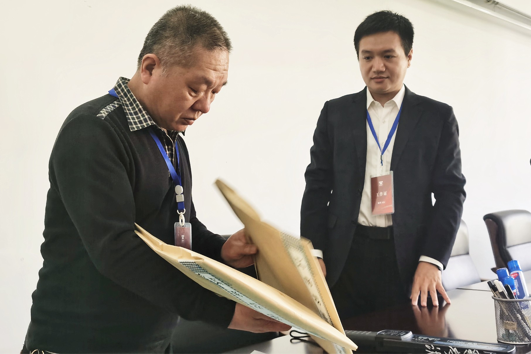 (圖為董事長(zhǎng)汪利國(guó)、總經(jīng)理彭?xiàng)钴姟⒈O(jiān)察室主任邵克于現(xiàn)場(chǎng)巡查監(jiān)督)