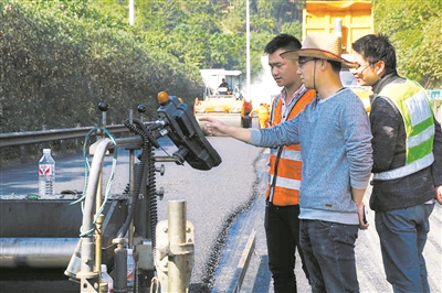 “路面銑刨時有時會出現(xiàn)銑刨不完全存在夾層的現(xiàn)象,如不清理干凈則會嚴(yán)重影響攤鋪后路面的平整度。”楊金梁介紹道,所以攤鋪時每道工序,他都時刻緊盯,確保攤鋪的路面不存在任何瑕疵。