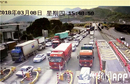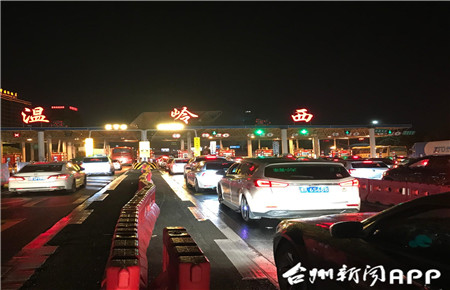3月4日驚蜇雷鳴,大雨瓢潑,大批車(chē)輛涌向溫嶺西收費(fèi)所出口。