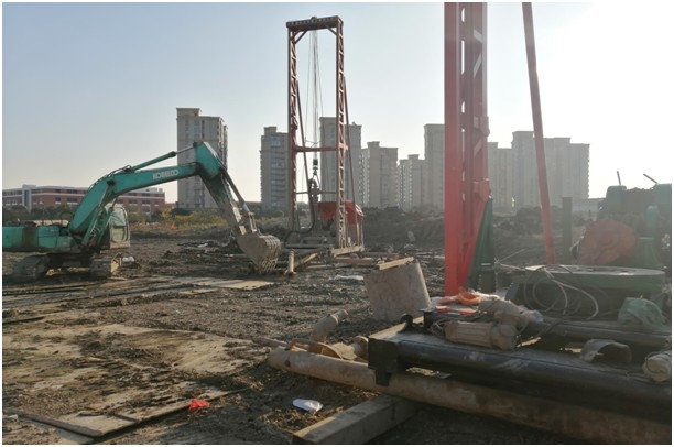 據了解,椒江洪家項目試樁工程于2020年12月18日正式開標,隨后樁機、挖掘機等機械設備陸續進場,施工管理人員對項目場地內水電線路、臨時道路、泥漿池等前期工作進行精心布置。截至目前,現場已就位兩臺樁基。